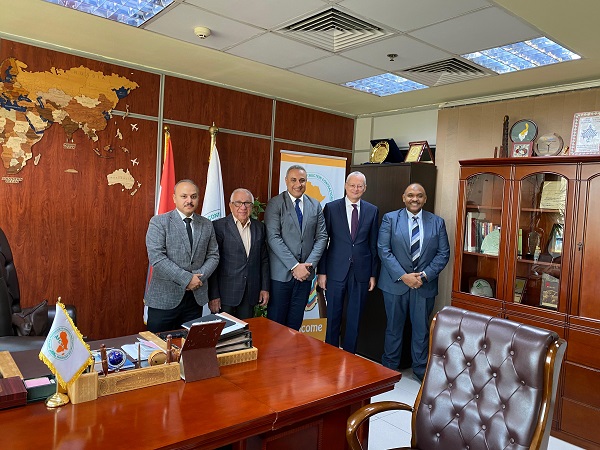 المهندس محمد النجار العضو المنتدب لمجموعة شركات الجيزة المتخصصة في الصناعات الكهربائية والمقاولات يرافقه فريق من مستشاري الشركة، بحضور السفير حاتم تاج الدين أمين عام الاتحاد.